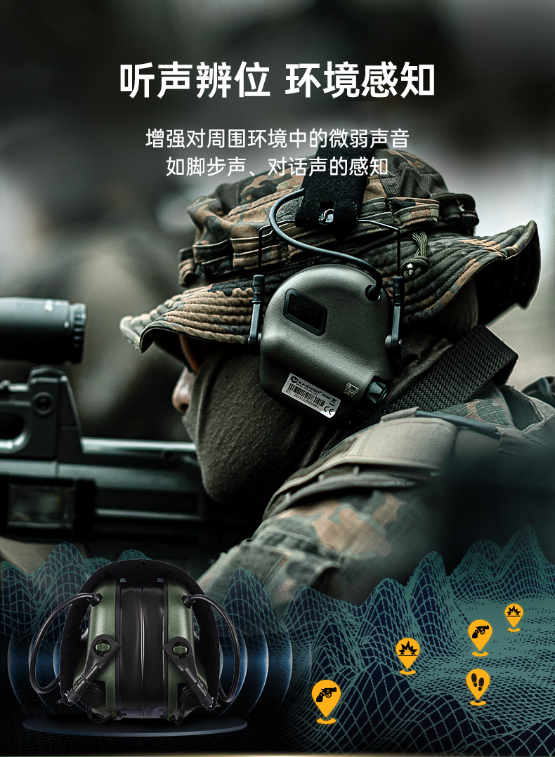 EARMOR耳魔M31 Plus拾音降噪战术耳机射击训练头戴式听力防护耳罩