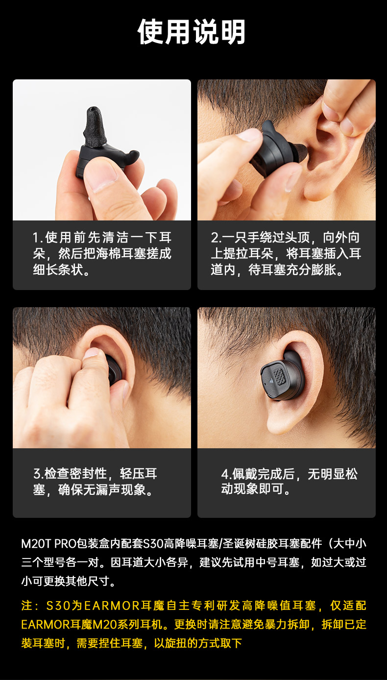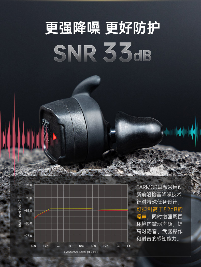 EARMOR® 耳魔 M20T Pro 是最新一代蓝牙听力保护耳塞,采用入耳式电子听力保护方式,可为您提供连续的噪声和脉冲噪声保护,阻隔高于 82分贝的危险噪音,并在严峻环境中提高态势感知能力和沟通能力。使用蓝牙 5.4技术,连接更稳定,可在降噪状态下连接设备,自由收听音乐接听电或拒接电话,提升通信娱乐多样性。耳机满电状态下可续航 10 小时,拥有语音提示功能,低电量或任何操作情况下都能即时确认。对比各类传统的拾音降噪耳机,产品体积更小、重量更轻,综合护具兼容性、便携性、舒适性于一身。